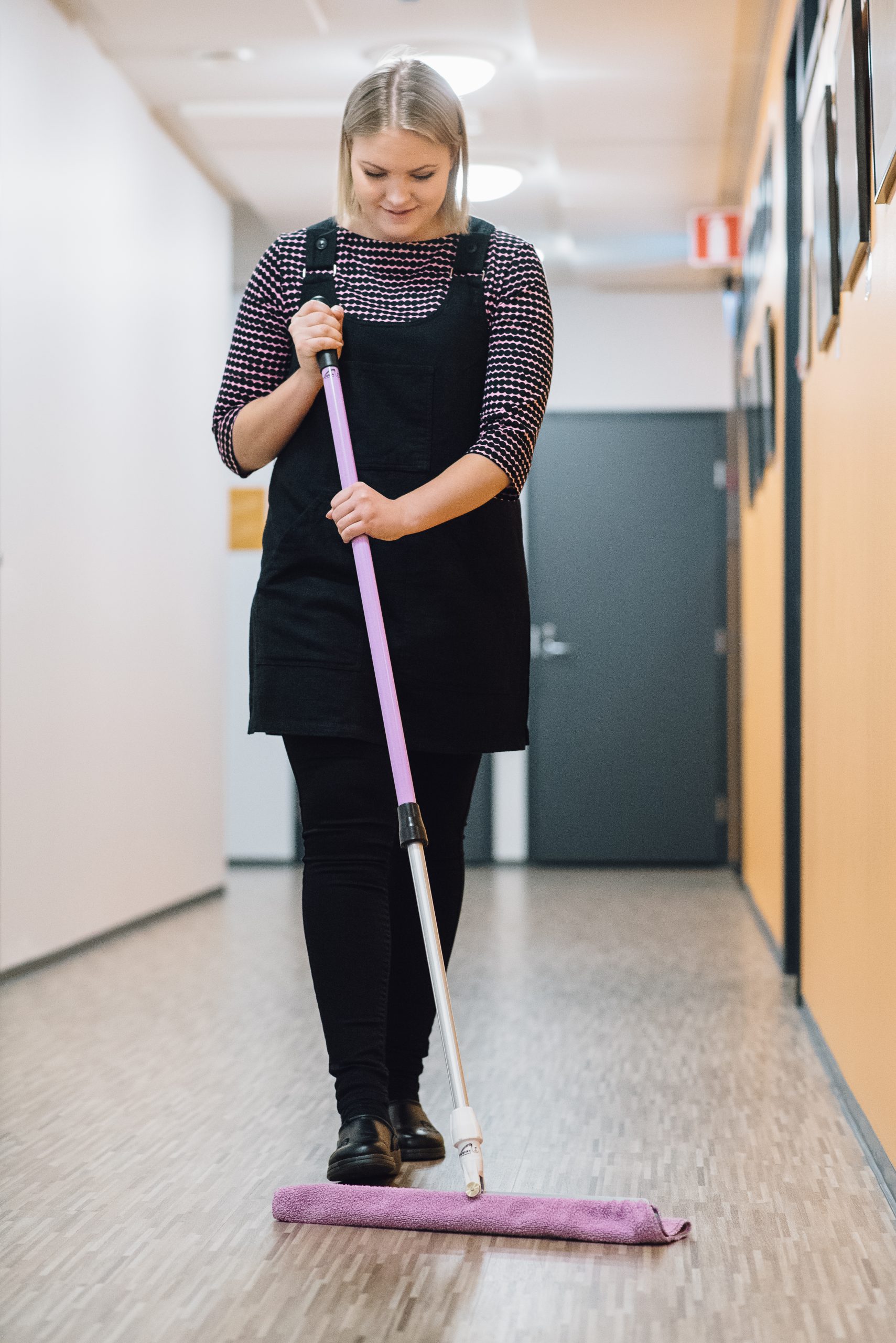 80-100 cm monitoimipuhdistajalla käytävät, neuvotteluhuoneet ja muut väljästi kalustetut tilat esim. pukuhuoneet.